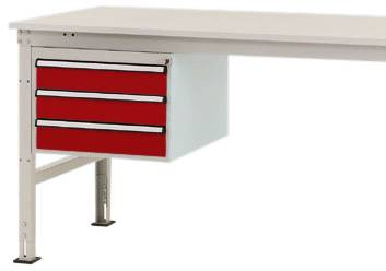 Komplett UNIVERSAL háztartás a munkaeszközök intelligens és tiszta szervezéséhez és tárolásához közvetlenül a munkahelyen, 500 mm szélességgel, 580 mm mélységgel és 360 mm magassággal. A ház szilárdan megerősített acéllemezből készül, kiváló minőségű porréteggel bevonva rubinvörös RAL 3003-ban. A ház minden UNIVERSAL munkaasztalhoz berakható 200 kg-ig (Ergo = 100 kg). A ház hengerzárral és 2 kulcskal, valamint központi zárral van felszerelve. A ház 1000 mm-es asztalmélységű mobil UNIVERSAL munkaasztalokon használható. A ház használható magassága 300 mm, 3 fiókból áll, 3 x 100 mm magassággal. A ház fiókos zárral rendelkezik, amely megakadályozza, hogy a fiók vezetés közben véletlenül kifogyjon. A fiókok 80% -ig kihúzhatók és 35 kg-ig is elférnek. A fiókok nagy fogantyúval és kiegészítő fiókkal vannak ellátva a fiókok címkézéséhez. A ház egyetlen kihúzható zárral van felszerelve. Ez megakadályozza több fiók akaratlan és egyidejű kinyílását, és így csökkenti az összetörés és a sérülés kockázatát. UNIVERSAL Ergo munkaasztalok csak 1500 mm szélességű asztaloktól használhatók.