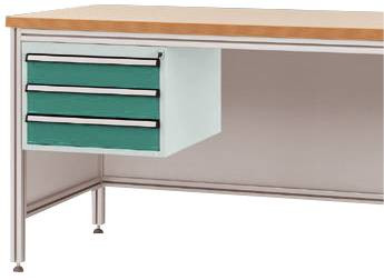 Háztartó ALU munkaasztalokhoz, használható magasság 300 mm, 3 fiókkal, az asztalmélységhez 800 mm