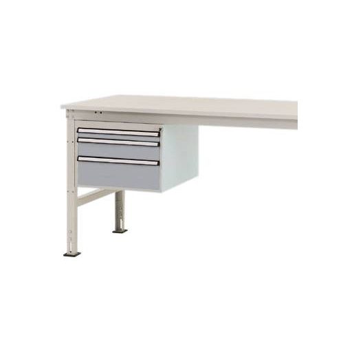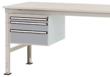 Komplett UNIVERSAL háztartás a munkaeszközök intelligens és tiszta szervezéséhez és tárolásához közvetlenül a munkahelyen, 500 mm szélességgel, 580 mm mélységgel és 360 mm magassággal. A ház szilárdan megerősített acéllemezből készül, kiváló minőségű, porcelánval bevont alumínium ezüstben, hasonlóan a RAL 9006-hoz. A ház minden UNIVERSAL munkaasztalhoz berakható 200 kg-ig (Ergo = 100 kg). A ház hengerzárral és 2 kulcskal, valamint központi zárral van felszerelve. A ház rögzített UNIVERSAL munkaasztalokon használható, 1200 mm asztalmélységgel. A ház használható magassága 300 mm, és 3 fiókból áll, 1 x 50, 1 x 100, 1 x 150 mm magassággal. A fiókok 80% -ig kihúzhatók és 35 kg-ig is elférnek. A fiókok nagy fogantyúval és kiegészítő fiókkal vannak ellátva a fiókok címkézéséhez. A ház egyetlen kihúzható zárral van felszerelve. Ez megakadályozza több fiók akaratlan és egyidejű kinyílását, és így csökkenti az összetörés és a sérülés kockázatát. UNIVERSAL Ergo munkaasztalok csak 1500 mm szélességű asztaloktól használhatók.