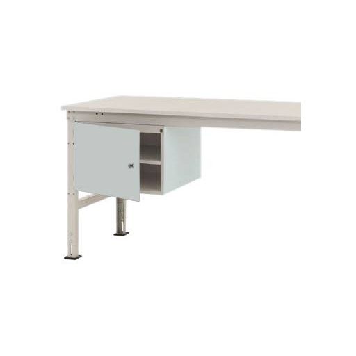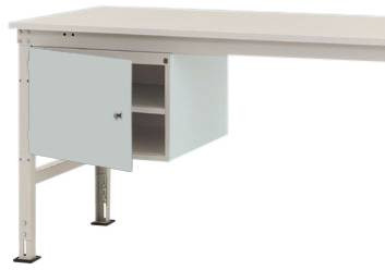 Komplett UNIVERSAL háztartás a munkaeszközök intelligens és tiszta szervezéséhez és tárolásához közvetlenül a munkahelyen, 500 mm szélességgel, 580 mm mélységgel és 360 mm magassággal. A ház szilárdan megerősített acéllemezből készül, kiváló minőségű porréteggel bevonva, világosszürke RAL 7035 színben. A ház minden UNIVERSAL munkaasztalhoz berakható 200 kg-ig (Ergo = 100 kg). A ház hengerzárral és 2 kulccsal van felszerelve. A ház használható rögzített UNIVERSAL munkaasztalokon, 800 mm asztalmélységgel. A ház használható magassága 300 mm, és egy ajtóból áll, rögzített polccal. UNIVERSAL Ergo munkaasztalok csak 1500 mm szélességű asztaloktól használhatók.
