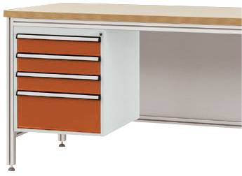 Ház alapja alumínium munkaasztalokhoz, használható magasság 500 mm, 4 fiókkal, az asztalmélységhez 600 mm