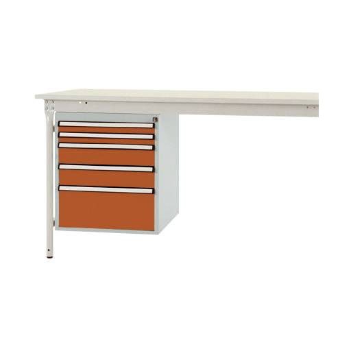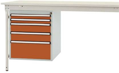 Komplett BASE alap a munkaeszközök intelligens és tiszta szervezéséhez és tárolásához közvetlenül a munkahelyen, 500 mm szélességgel, 580 mm mélységgel és 560 mm magassággal. A ház szilárdan megerősített acéllemezből készül, kiváló minőségű porbevonattal, vörös narancssárga színben, RAL 2001. A ház minden BASIS oldalsó asztalhoz 200 kg-ig terhelhető. A ház használható rögzített BASIS oldalsó asztalokon, 800 mm-es asztalmélységgel. A ház hengerzárral és 2 kulcskal, valamint központi zárral van felszerelve. A ház felhasználható magassága 500 mm, öt fiókból áll, perforált talppal és redőnymagasságokkal 2 x 50 mm, 2 x 100 és 1 x 200 mm. A fiókok 80% -ig kihúzhatók és 35 kg-ig is elférnek. A fiókok nagy fogantyúval és kiegészítő fiókkal vannak ellátva a fiókok címkézéséhez. A ház egyetlen kihúzható zárral van felszerelve. Ez megakadályozza több fiók akaratlan, egyidejű kinyílását, és ezzel megakadályozza a zúzódást és a sérüléseket. Felhívjuk figyelmét, hogy minden asztalhoz csak egy ház alsó szerkezet csatlakoztatható.