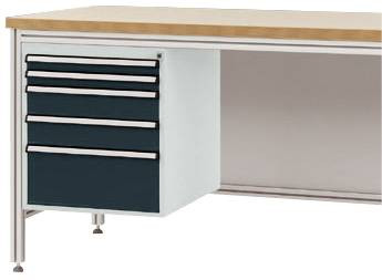 Háztartó alumínium munkaasztalokhoz, használható magasság 500 mm, 5 fiókkal, az asztalmélységhez 800 mm
