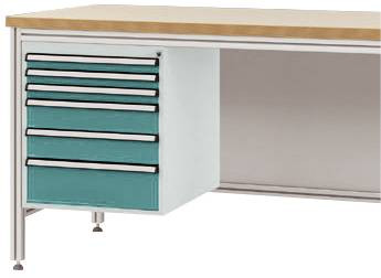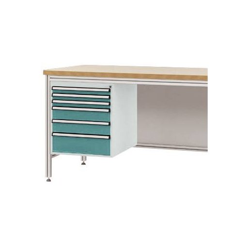 Ház alapja alumínium munkaasztalokhoz, használható magasság 500 mm, 6 fiókkal, az asztalmélységhez 800 mm