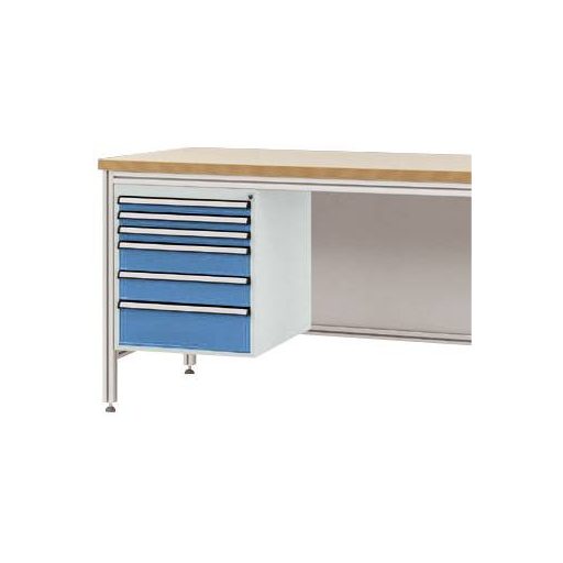 Háztartó alumínium munkaasztalokhoz, használható magasság: 500 mm, 6 fiókkal, az asztalmélységhez: 600 mm