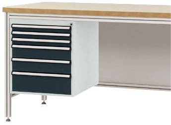 Háztartó alumínium munkaasztalokhoz, használható magasság: 500 mm, 6 fiókkal, az asztalmélységhez: 600 mm