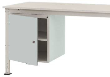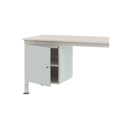 Komplett UNIVERSAL háztartás a munkaeszközök intelligens és tiszta szervezéséhez és tárolásához közvetlenül a munkahelyen, szélessége 500 mm, mélysége 580 mm és magassága 560 mm. A ház szilárdan megerősített acéllemezből készül, kiváló minőségű porréteggel bevonva, világosszürke RAL 7035 színben. A ház minden UNIVERSAL munkaasztalhoz berakható 200 kg-ig (Ergo = 100 kg). A ház hengerzárral és 2 kulccsal van felszerelve. A ház helyhez kötött UNIVERSAL munkaasztalokon használható, 1000 mm asztalmélységgel. A ház használható magassága 500 mm, és egy ajtóból áll egy rögzített polc. UNIVERSAL Ergo munkaasztalok csak 1500 mm szélességű asztaloktól használhatók.