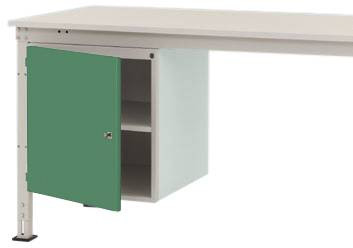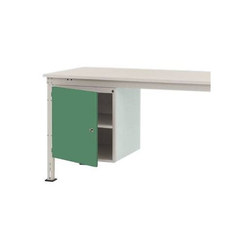 Komplett UNIVERSAL háztartás a munkaeszközök intelligens és tiszta szervezéséhez és tárolásához közvetlenül a munkahelyen, szélessége 500 mm, mélysége 580 mm és magassága 560 mm. A ház szilárdan megerősített acéllemezből készül, kiváló minőségű, porréteggel bevont, zöld színű RAL 6011 anyaggal. A ház minden UNIVERSAL munkaasztalhoz berakható 200 kg-ig (Ergo = 100 kg). A ház hengerzárral és 2 kulccsal van felszerelve. A ház rögzített UNIVERSAL munkaasztalokon használható, 1200 mm asztalmélységgel. A ház használható magassága 500 mm, és egy ajtóból áll egy rögzített polc. UNIVERSAL Ergo munkaasztalok csak 1500 mm szélességű asztaloktól használhatók.