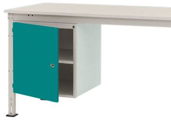 Komplett UNIVERSAL háztartás a munkaeszközök intelligens és tiszta szervezéséhez és tárolásához közvetlenül a munkahelyen, szélessége 500 mm, mélysége 580 mm és magassága 560 mm. A ház szilárdan megerősített acéllemezből készül, kiváló minőségű porréteggel bevonva, RAL 5021 vízkékben. A ház minden UNIVERSAL munkaasztalhoz berakható 200 kg-ig (Ergo = 100 kg). A ház hengerzárral és 2 kulccsal van felszerelve. A ház rögzített UNIVERSAL munkaasztalokon használható, 1200 mm asztalmélységgel. A ház használható magassága 500 mm, és egy ajtóból áll egy rögzített polc. UNIVERSAL Ergo munkaasztalok csak 1500 mm szélességű asztaloktól használhatók.
