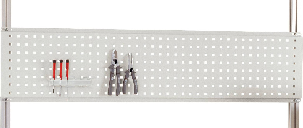 Az összes alumínium szerelőportál perforált szerszámlapját a szerszámtartók és akasztók rögzítéséhez használják, így optimalizálva a szerszámokhoz és más apró alkatrészekhez való hozzáférést. Ezenkívül növeli az alkalmazottak munkateljesítményét. A perforált szerszámlap a CANTOLAB és az ALU alumínium építési portálhoz van rögzítve. A perforált szerszámlemez 38 mm-es rácsban van perforálva és acéllemezből készül, teljes szélessége 996 mm, teljes mélysége 23 mm és teljes magassága 350 mm. A használható magasság 300 mm. A perforált lemezt az alumínium építési portálokhoz kell rögzíteni. A perforált szerszámlemez kiváló minőségű, porréteggel bevonva, világosszürke RAL 7035 színben.