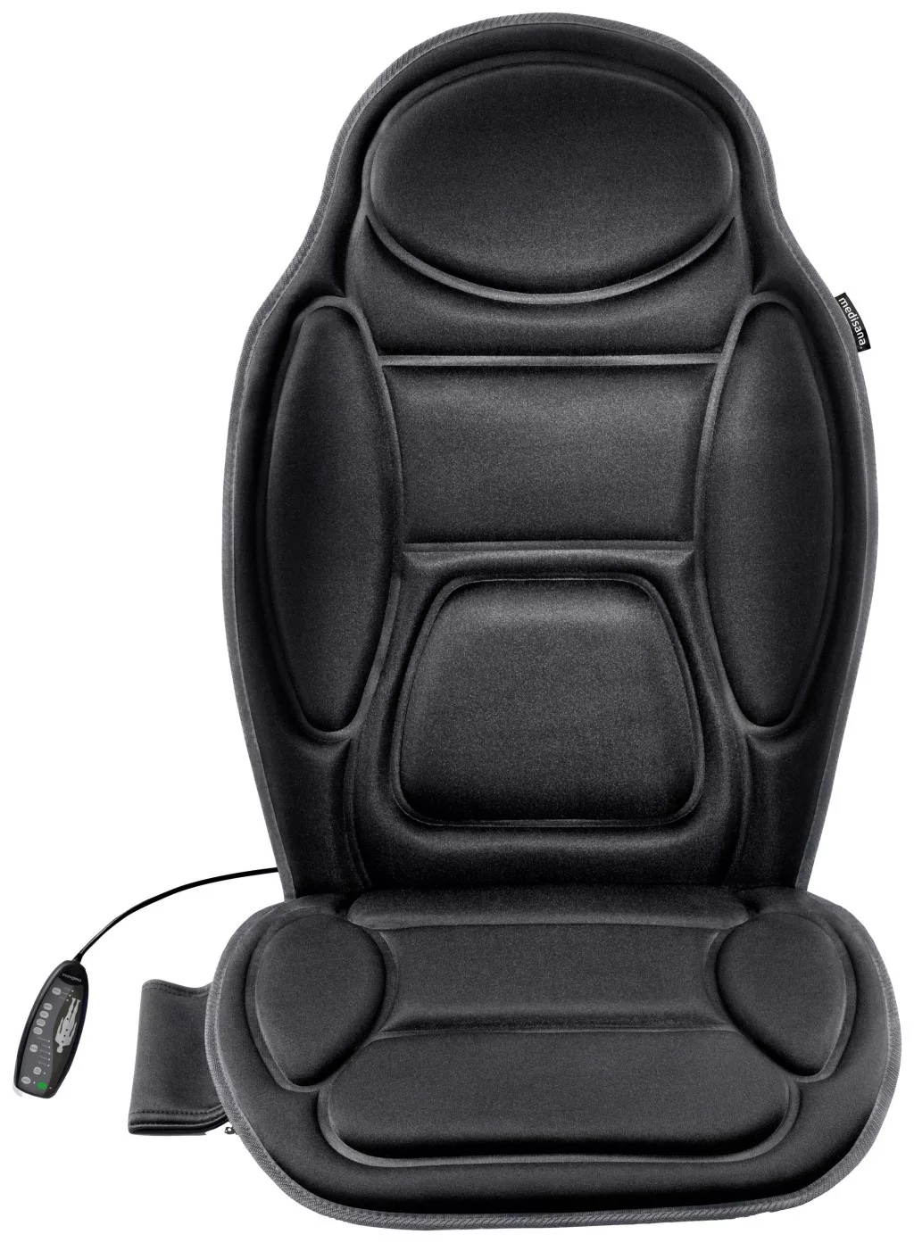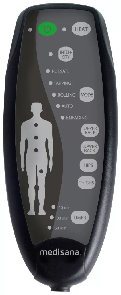 Jellemzők: 5 előre beállított masszázsprogram · 4 masszírozási zóna egyenként vagy kombinálva is választható · 5 masszírozómotor a hát- és az ülőfelülethez · Bekapcsolható fűtőfunkció · Időzítő a működési időtartam programozásához: 15/30/60 perc · Különösen könnyen kezelhető és egyszerűen elhelyezhető · Magas szintű masszázs: célzott, intenzív masszázshatás az érezhetően jó közérzethez · Autókban is használható · Kellemes vibrációs masszázs: háromféle beállítható intenzitással · Programvezérlés praktikus vezetékes távirányítóval.