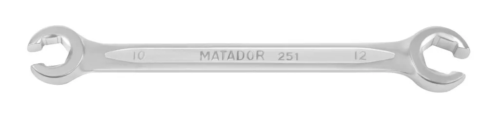 Króm-vanádium acélból készült, nyitott, dupla gyűrűs csavarkulcs, metrikus. Csatlakozó anyákhoz és csavarokhoz, ideális fékvezetékekhez. Csepp kovácsolt megerősített gyűrűvel. A 15 ° -os szögű és hasított fejek.