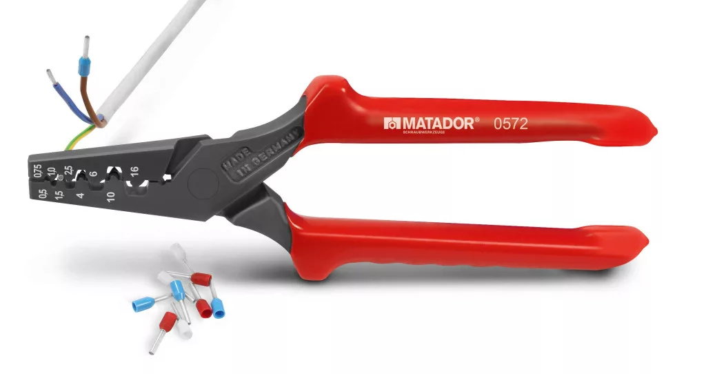 Ferrule fogók. DIN 46228 szerinti huzalvéghüvelyekhez. Kézzel kovácsolt, nem szigetelt és szigetelt hüvelyekhez. Kar-arány a könnyebb munka érdekében.