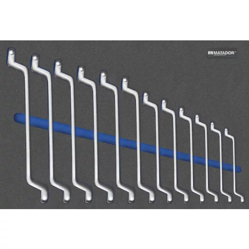 MTS-R / V (570x390mm): kettős gyűrűs kulcs. Kéttónusú MTS lágy habbetét 12 darabból. DIN 838 kettős gyűrűs csavarkulcskészlet. 6 x 7 - 8 x 9 - 10 x 11 - 12 x 13 - 14 x 15 - 16 x 17 - 18 x 19 - 20 x 22 - 21 x 23 - 24 x 27 - 25 x 28 - 30 x 32 mm. Alkalmas RATIO és VARIO műhelykocsikhoz.