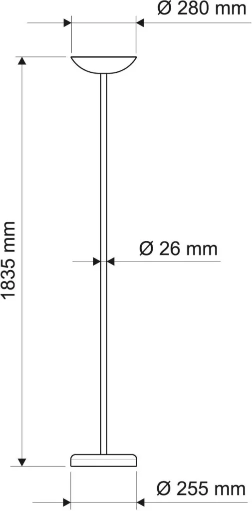 Méretek: Magasság: 183 cm - Fej: Ø 28 x 7,45 cm - Oszlop: Ø 2,6 cm - Talp: Ø 26 cm