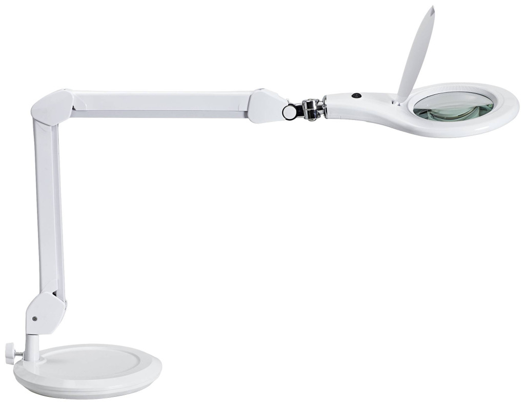 A dizájnmodell a nagyítólámpák között. Elegáns: Stabil paralelogramma fém kar, nagyon változó beállítás. Rendkívül gazdaságos: modern LED technológia, nagy energiahatékonyság, a LED-ek hosszú élettartama. Garantálja a nulla áramfogyasztást kikapcsolt állapotban. Egységes megvilágítás gyűrűben elhelyezett LED-ekkel.