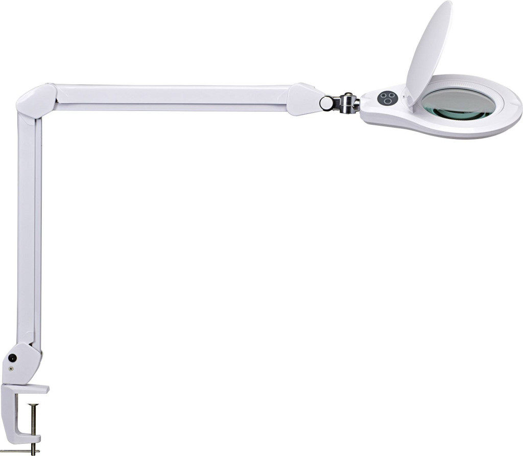Műszaki adatok: 2021-es energiahatékonysági osztályok: E (A - G) · Energiafogyasztás: 11 kW/1000 óra · Fényszín: 6300 K · Fényszín (fényforrás): Nappalifény fehér · Fényáram összesen: 700 lm · Fényáram/fényforrás (lumen): 12 lm · Gyártói szín: Fehér · LED-ek száma: 60 · Lencse Ø: 127 mm · Méret, magasság: 39 cm · Méret, szélesség: 44 cm · Nagyítási tényező: 1.75 x · Rögzítés módja (nagyítós lámpa): Asztalcsíptető · Teljesítmény: 11 W · Üzemi feszültség: 230 V