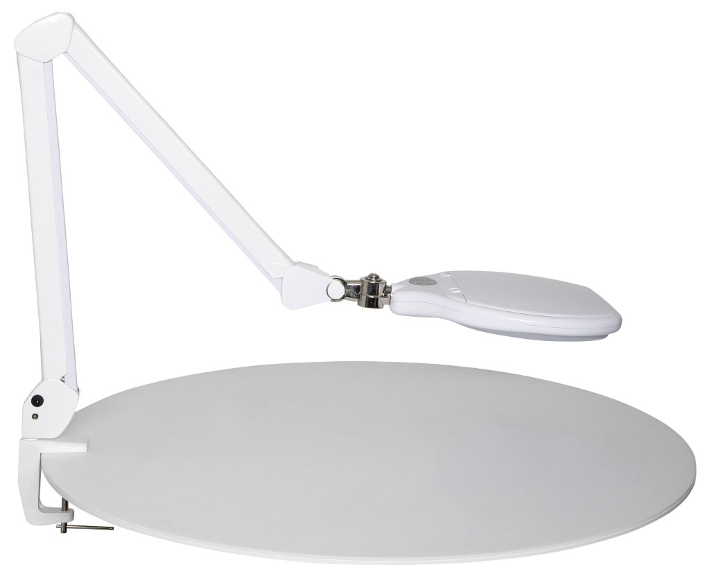 Technical specifications: 2021-es energiahatékonysági osztályok: F · Dimmelhető: Igen · Foglalat: Fixen beépített LED-es · Fényforrás típus: LED (egyszínű) · Fényszín: 6500 K · Fényszín (fényforrás): Nappalifény fehér · Fényáram/fényforrás (lumen): 1.868 lm · Lencse méret, hossz: 132 mm · Lencse méret, szélesség: 178 mm · Méret, hossz: 84 cm · Méret, magasság: 51 cm · Méret, szélesség: 25.5 cm · Nagyítási tényező: 1.75 x · Rögzítés módja: Asztalcsíptető · Szín: Fehér · Teljesítmény: 18 W · További műszaki adatok: Energiafogyasztás: 18 kWh/1000 óra fényforrásonként