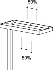 Fokozatmentesen állítható dimmer tevékenységtől és egyéni igényektől függően. A sugárzás felfelé kb.50%, lefelé kb.50%.