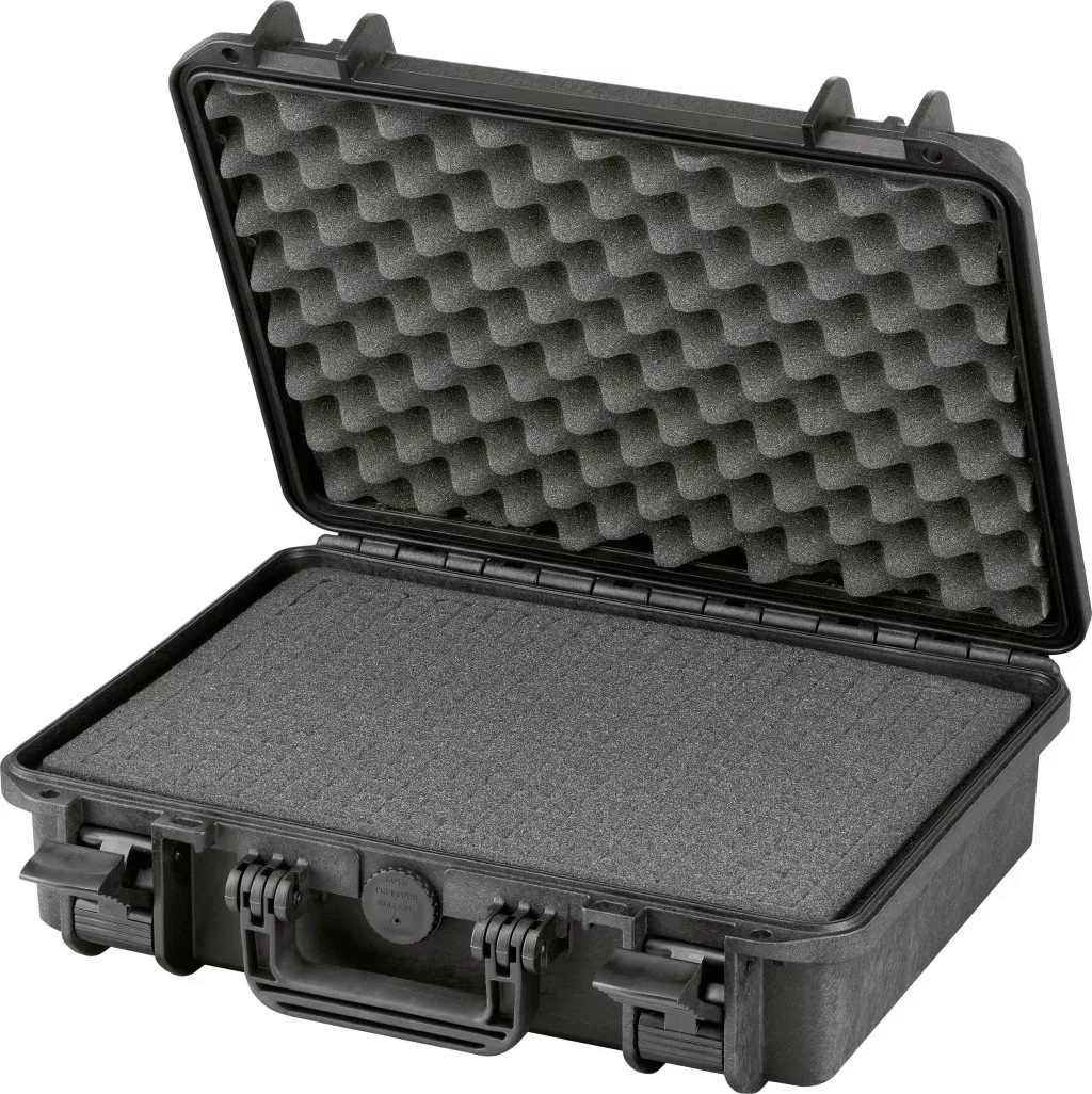 Jellemzők: Vízálló, kör alakú tömítés a fedélben · Automatikus nyomáskiegyenlítő szelep · Kétirányú csuklós zárak · Gumírozott fogantyúk a magas viselési kényelem érdekében · Két perforáció lakatokhoz · Eszköz hordozó heveder rögzítéséhez · Összerakható és forgatható · Ütésálló az extra erős fal miatt · Zsanérok a ház teljes hosszában · Csavarok ki Nylon garantálja a korrózióvédelmet · IP67 tanúsítvánnyal.