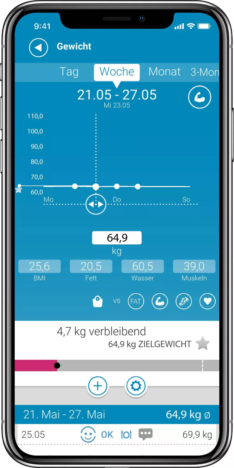 Jellemzők: Nyelvek Menüben történő navigálás: Német, angol, francia, olasz és spanyol Láthatatlan LED-es kijelző (csak akkor jelenik meg, ha a mérlegelés megtörténik) Konvertálható mérőegység Akkumulátorcsere-jelző Bekapcsolt automatikus 4-szenzoros technológia Automatikus kikapcsolás Bluetooth® intelligens adatátvitel a VitaDock + alkalmazásba iOS, Android és Szinkronizálás a VitaDock® Online integrált kalóriaigény-elemzéssel Érzékelő érintőbillentyűzettel Kiváló minőségű ITO elektródák