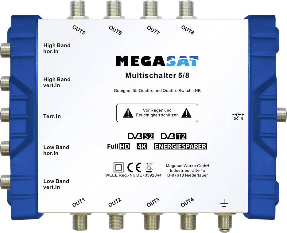A Megasat multiswitch sorozat a legújabb technológiával van felszerelve. Minden kapcsoló kompatibilis a Quad LNB-vel (Quattro-Switch LNB), és lehetővé teszi a multiswitch integrálását egy meglévő rendszerbe még a telepítés után is.