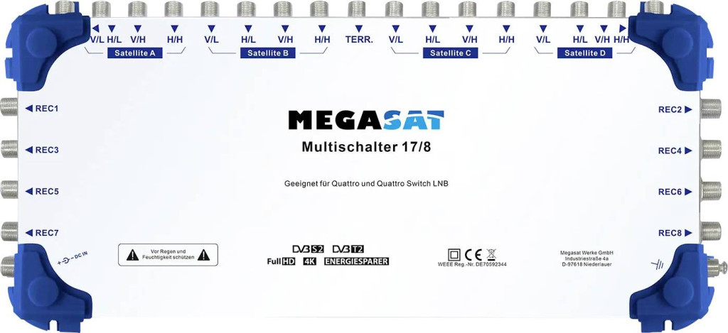 A Megasat multiswitch sorozat a legújabb technológiát alkalmazza, és teljes mértékben kompatibilis a négyes LNB-kkel (Quattro-Switch LNB). Ez lehetővé teszi a multiswitchek egyszerű integrálását a meglévő rendszerekbe.