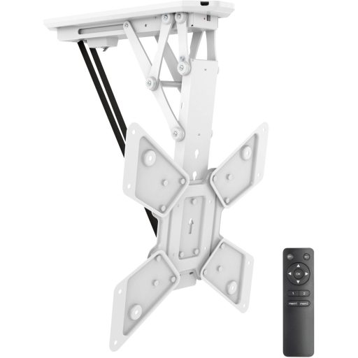Műszaki adatok: Döntési tartomány (felfelé): 0 ° · Döntési tartomány (lefelé): 75 ° · Forgatási tartomány (balra): 3 ° · Forgatási tartomány (jobbra): 3 ° · Gáznyomásos technológia: Nem · Kijelző mérethez alkalmas (tartomány): 58,4 cm (23") - 139,7 cm (55") · Szín: Fehér · Tartó jellemzők: Motorizált,Billenthető,Távirányítóval · Tartó típus: Mennyezeti tartó · Tartóerő (max.): 30 kg · Termék típus: TV mennyezeti tartó · VESA szabvány: 100 x 100 mm,100 x 200 mm,150 x 100 mm,200 x 100 mm,200 x 200 mm,200 x 300 mm,200 x 400 mm,300 x 100 mm,300 x 200 mm,300 x 300 mm,300 x 400 mm,400 x 100 mm,400 x 200 mm,400 x 300 mm,400 x 400 mm