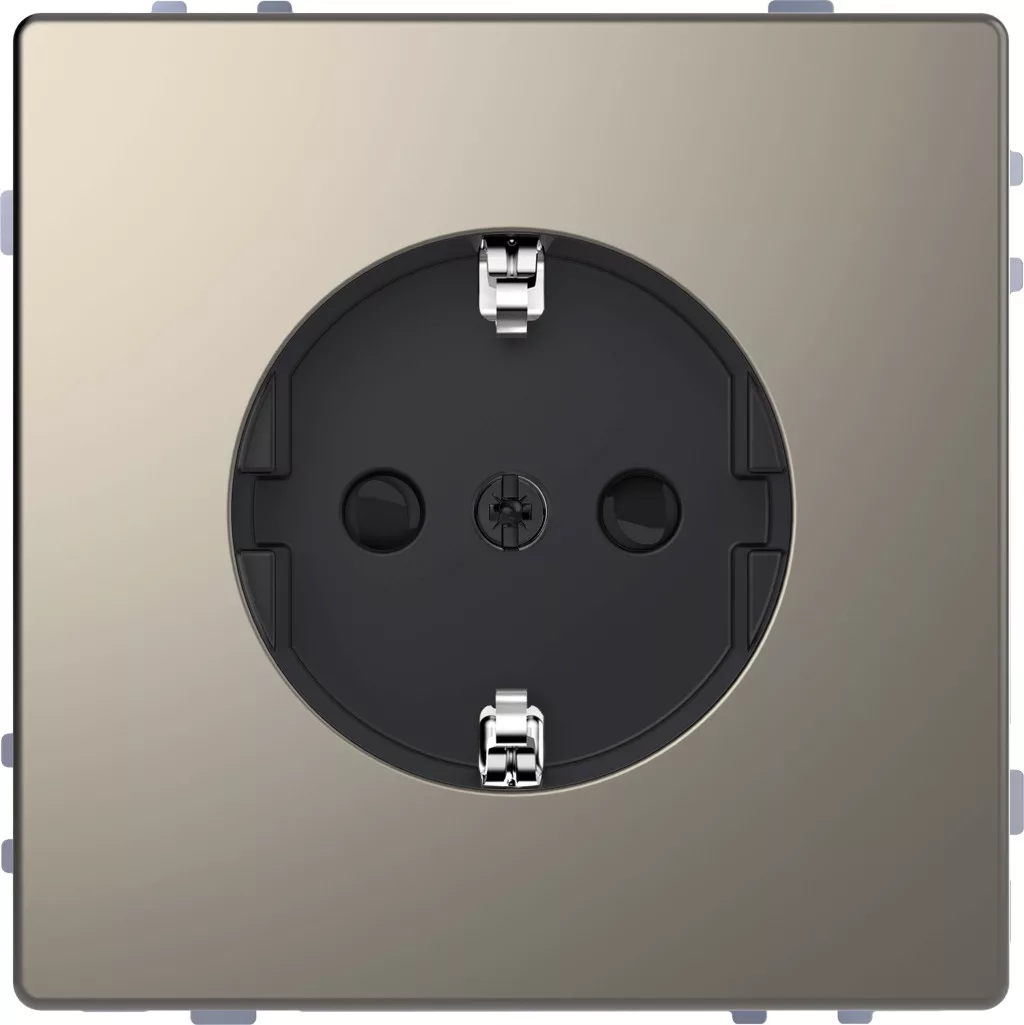 Az integrált fokozott érintésvédelem a VDE 0620 1. rész (Gyermekvédelem). Jellemzők: -Frontális visszahúzás a QuickFlex modulokról a hálózati aljzat szétszerelése nélkül. - Gyorskioldó csavarok a karom rögzítéséhez. - Átfordított karomok visszahúzó rugóval. - Magasfényű horganyzott támasztógyűrű, a karomhoz. Körmös és csavaros rögzítéssel. Csavaros emelő bilincsek merev és rugalmas vezetőkhöz 4 mm2-ig. Anyag: fém. Szín: Nickel Metallic.