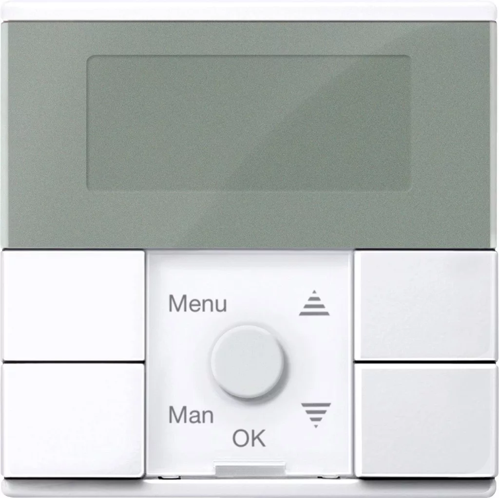 6 óra. Visszaállítás a gyári beállítások visszaállításához. Kapcsolható véletlenszám-generátor (0-30 perc tartományban). Asztro funkció. Könnyű váltás a nyári és téli időszámítás között. Egyedileg programozható futási idő. Kézi működtetés bármikor lehetséges. Választható nyílbillentyű-funkció gombokhoz vagy globális jelenetekhez. A napvédő funkció fényerő értékei állíthatók. Szélriasztás esetén a viselkedés beállítható. Helyileg vezérelhető redőnyök/redőnyök - redőnyvezérlő betét. Globális redőnyök/redőnyök vezérlése, jelenetek előhívása - központi egység használata. 5 gombot vezérel. Kijelző elemek 5 LED, LCD kijelző. Csatlakozó modul interfész. Kiegészítendő a MEG5190-0000 központi egység betéttel. Elektronikus kapcsolóbetét MEG5151-0000. Elektronikus kapcsolóbetét, 2-állású MEG5152-0000. Relé kapcsolóbetét MEG5161-0000. Relé kapcsolóbetét, 2-utas MEG5162-0000. Redőnyvezérlő betét MEG5165-0000. Univerzális fényerőszabályzó betét MEG5171-0000. Univerzális fényerőszabályzó betét, 2-utas MEG5172-0000. Vezérlőbetét 1-10 V MEG5180-0000. DALI vezérlőbetét MEG5185-0000. Anyag: ragyogó termoplasztikus, antibakteriális. Sima és önfertőtlenítő felület antibakteriális hatással. Színe hasonló a RAL 9016-hoz. Szín aktív fehér, fényes.