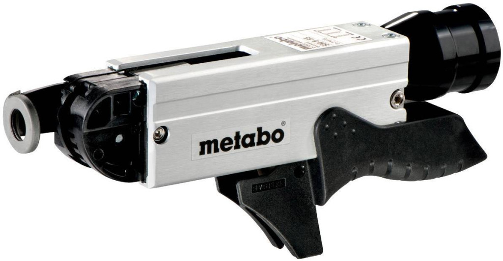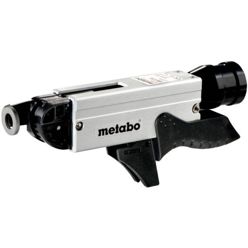 SM 5-55 csavarhúzó tár. Robusztus csavarhúzó tár a Metabo gipszkarton csavarhúzóhoz. Gyors, pontos sorozatos csavarozáshoz. A kereskedelemben kapható csavarszíjak 50 darab csavarral használhatók. 25-55 mm hosszú csavarok feldolgozásához csavarfej Ø 9,5 mm-ig és tengely Ø 5 mm-ig. Finoman beállítható becsavarható mélység. Kivehető csavarhúzó-tár egycsavarok feldolgozásához.