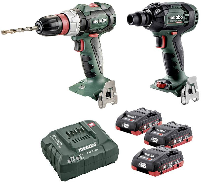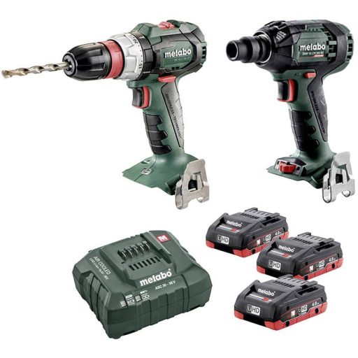 Szállítás tartalma: Metabo alapkészlet 1666853, Metabo SSW 18 LTX 300 vezeték nélküli ütőmeghajtó 2001840, Metabo BS 18 LT BL Q akkus fúró / meghajtó 1667848