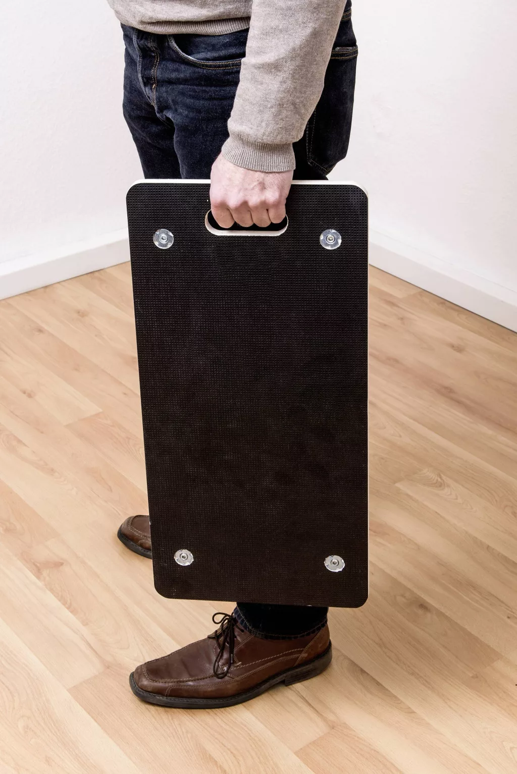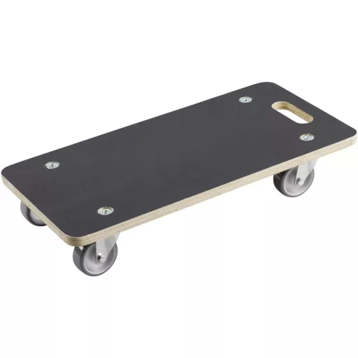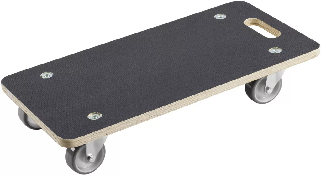 Jellemzők: Teherbírás (max.): 200 kg Lemezméret: 590 x 290 mm Lemezvastagság: 18 mm Teljes magasság: 110 mm Kerék-Ø: 75 mm Anyagkerék: Poliuretán (PU) / polipropilén (PP) Anyaglemez : Szitanyomás lemez · Kerekek száma: 4