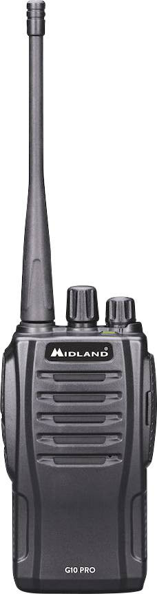 MIDLAND G10 Pro rádió egy nagyon jó minőségű PMR rádió megfizethető áron. A készülék lenyűgözi a könnyű kezelhetőséget és olyan hasznos kiegészítő funkciókat, mint a 16 előre programozható csatorna, CTCSS és DCS azonosító hangok. Az opcionális "PRG 10" szoftver segítségével ez a rádió a felhasználó igényeinek megfelelően programozható.