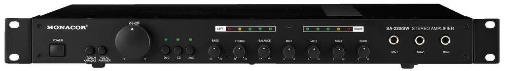 Monacor SA-230/SW Nagy teljesítményű erősítő RMS teljesítmény kimeneti csatornánként 4 Ohm-nál: 25 W