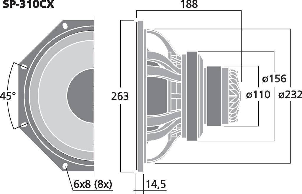Műszaki adatok: Beépítési mélység: 173 mm · Beépítési átmérő: 232 mm · Frekvencia (max.): 22000 Hz · Frekvencia (min.): 1000 Hz · Hangnyomás: 96 dB · Hangszóró méret (cm): 25.4 cm · Hangszóró méret (coll) (szatelita): 10 coll · Impedancia (egész szám): 8 Ω · RMS terhelhetőség: 200 W · Súly: 6.4 kg · Terhelhetőség (max. W): 400 W · További műszaki adatok: Impedancia (Z): 8 ohm (alacsony frekvencia), 8 ohm (magas frekvencia) · Rezonancia frekvencia (fs): 60 Hz (alacsony frekvencia) / 700 Hz (magas frekvencia) · Frekvenciatartomány: f3-3000 Hz (alacsony frekvencia) 1000-22000 Hz (magas frekvencia) · Maximális terhelhetőség: 400 WMAX (alacsony frekvencia) / 100 WMAX (magas frekvencia)