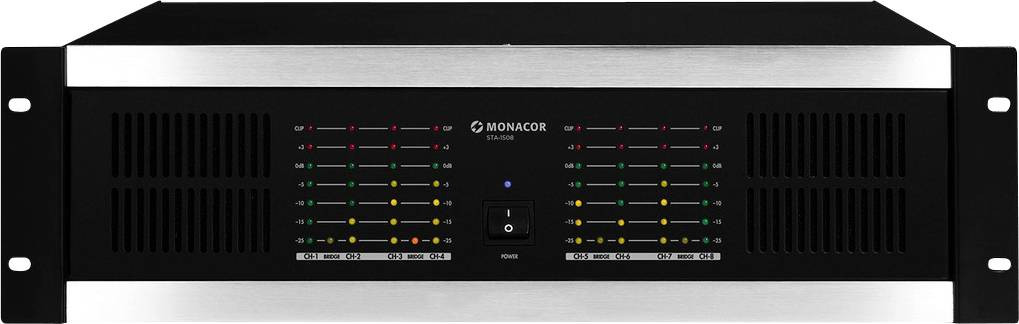 Monacor STA-1508 Nagy teljesítményű erősítő RMS teljesítmény kimeneti csatornánként 4 Ohm-nál: 160 W