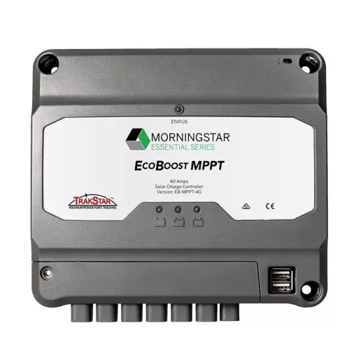 Az új Essential termékcsalád EcoBoost MPPT™ napelemes töltésvezérlője a Morningstar által kifejlesztett TrakStar Technology™-t tartalmazza. Az EcoBoost töltésvezérlő automatikusan érzékeli a rákapcsolt feszültséget (12 vagy 24 V). Ez a töltőmodell nagy hatékonysággal rendelkezik, és nagyon pontos, hogy az akkumulátorok mindig teljesen fel legyenek töltve.