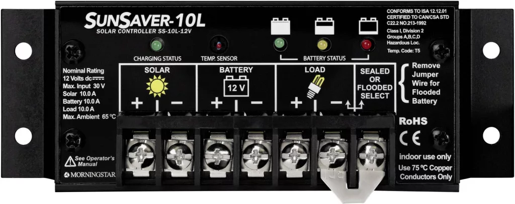 Ez a bevált és megbízható töltővezérlő lenyűgözi méretének és sokféle funkciójának, amelyek csak nagyobb készülékeken találhatók meg. Beépítették a négyfokozatú töltésvezérlőt, a teljes elektromos védelmet és az öndiagnosztikát a kritikus hibák észlelésére. Ezek és sok más funkció jellemzi a SunSaver készüléket.