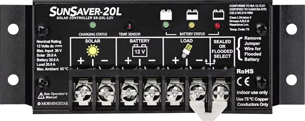 Ez a bevált és megbízható töltővezérlő lenyűgözi méretének és sokféle funkciójának, amelyek csak nagyobb készülékeken találhatók meg. Beépítették a négyfokozatú töltésvezérlőt, a teljes elektromos védelmet és az öndiagnosztikát a kritikus hibák észlelésére. Ezek és sok más funkció jellemzi a SunSaver készüléket.
