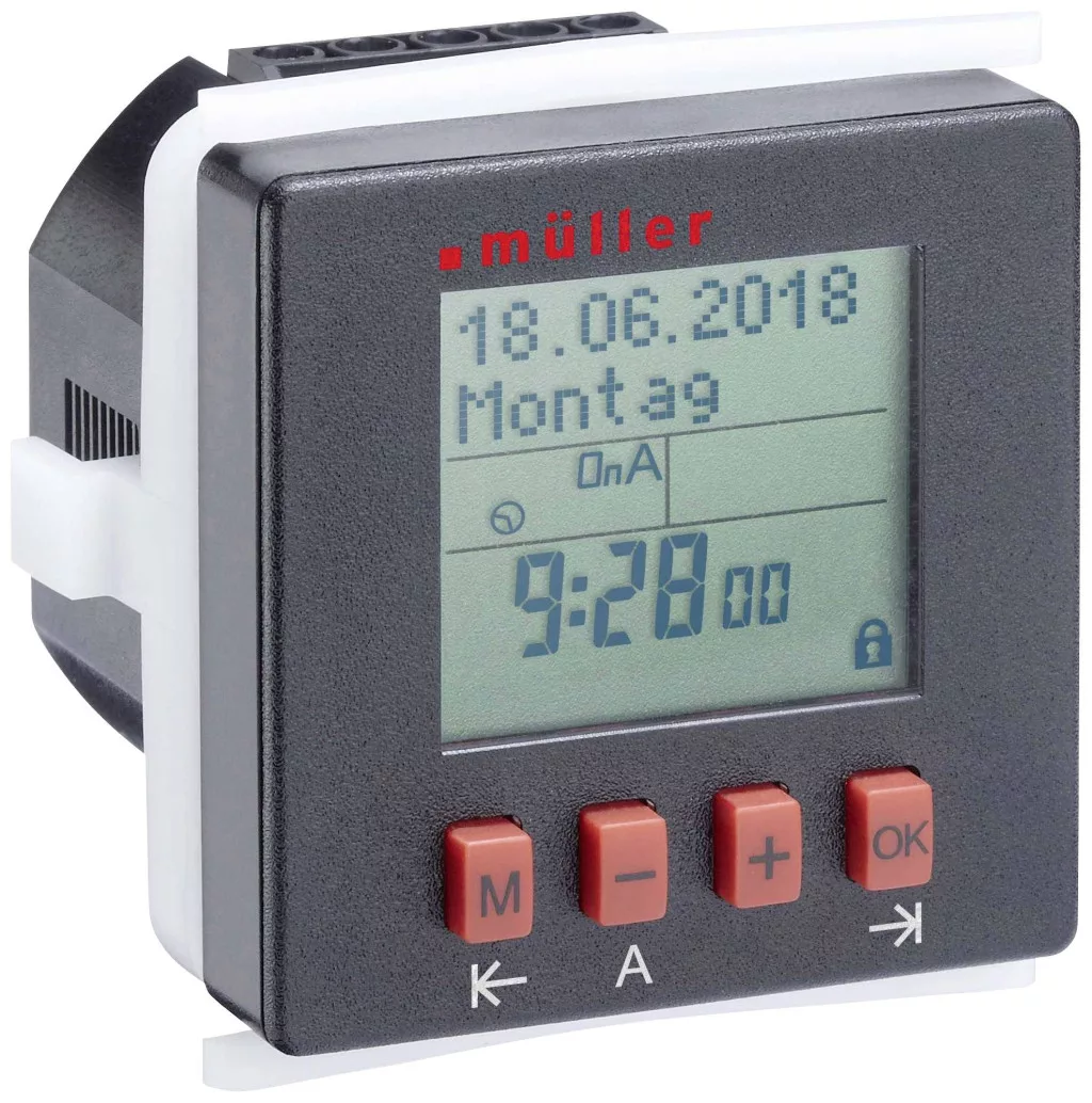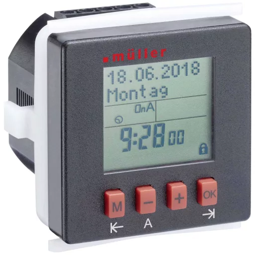 Müller 21812 Előlapba építhető időkapcsoló óra Digitális Napi program, Heti program IP20