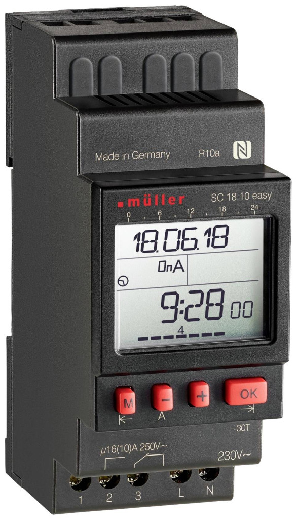 Műszaki adatok: Asztro funkció: Nem · Gyártói szín: Fekete, Piros · Időkapcsoló óra típus: Digitális · Impulzus: Igen · Kapcsolási ciklus: Napi program, Heti program · Kapcsoló csatornák: 1 csatorna · Kijelző megvilágítás (igen/nem): Nem · Kijelző típus: LC kijelző · Kimenő teljesítmény: 4000 W · Memóriahelyek: 56 · Menet reserve min.: 10 év · Méret, hossz: 63 mm · Méret, magasság: 90 mm · Méret, szélesség: 35.8 mm · Üzemi feszültség: 24 V/DC, 24 V/AC