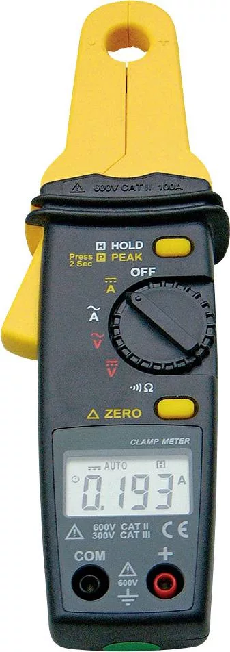 Műszaki adatok: Feszültségmérés: AC/DC · Kalibráció: Gyári standard (tanúsítvány nélkül) · Kijelző (digitek): 10000 · Kijelző (digitális/mechanikus/analóg): digitális · Méret, hossz: 34 mm · Méret, magasság: 70 mm · Méret, szélesség: 202 mm · Mérési kategória: CAT III 300 V · Mérési tartomány (A/DC max.): 100 A · Mérési tartomány (V/AC max.): 600 V · Mérési tartomány (VDC max.): 600 V · Mérési tartomány (ellenállás): 10 kΩ · Mérési tartomány, A/AC (max.): 100 A · Méréstípus: Középérték · Nyitási tartomány lakatfogóhoz: 12.5 mm · Súly: 180 g · Árammérés: AC/DC