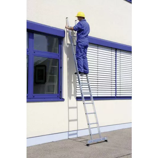 Alumíniumból készült létrados létra Stabil téglalap alakú csövek, 30 x 30 mm-es négyszögletű, mindkét oldalán hornyolt, négyszeres lépcsők / Spar csatlakozás. Felfüggesztési távolság: 280 mm Létraszélesség: 420 mm (kereszttartó nélkül) a nivello® kereszttartó a kiválasztott termékhez optimális szélességben, extra biztonságért Álljon és emelkedjen a nivello® létracipőknek köszönhetően, 2 tengelyes lejtős technológiával, a támadás szögének vezérlésével és a cserélhető láblapokkal. A keresztrúd lazán van bezárva és kétszer csavarva van a rúd alsó végéhez. Maximális terhelés: 150 kg