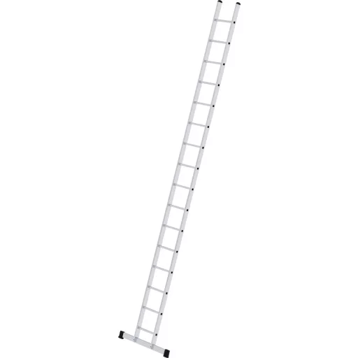 Alumíniumból készült létralépcsők Stabil téglalap alakú csövek, 30 x 30 mm-es négyszögletes lépcsők, mindkét oldalon hornyolva 4-szeres lépcsők / Spar-összeköttetés Távolsági távolság: 280 mm Létra szélessége: 420 mm (átmenet nélkül) Szabványos átjáró csúszásmentes létracipőkkel, a kiválasztott termékhez optimális szélességben. 3,0 m felett. A keresztrúd lazán van bezárva és kétszer csavarva van a rúd alsó végéhez. Maximális terhelés: 150 kg