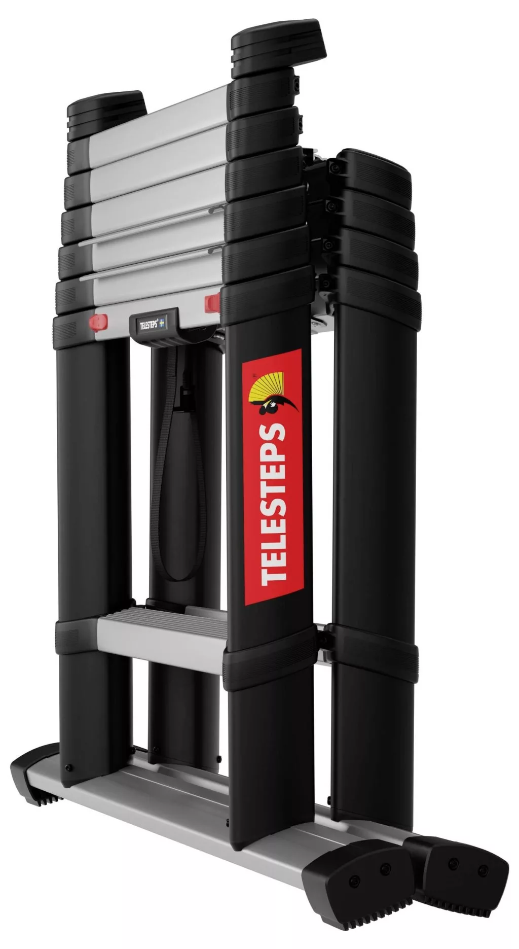 Eredeti Telesteps teleszkópos létra alumíniumból. Erős, kerek csőtartók, kopásálló eloxált, 90 mm mély lépcsőfokok vonalprofilokkal a csúszás kockázatának minimalizálása érdekében bővíthető maximális terhelés: 150 kg