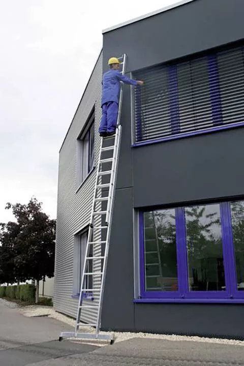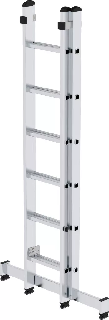 Alumíniumból készült létrahosszabbító létra Stabil téglalap alakú, cső alakú távtartó, mindkét oldalán hornyolt, négyirányú, rántott oszlop / Spar-csatlakozás 30 x 30 mm-es négyszögletes lengőkarral, egyszerű magasság-állítással a lépcsőről a lépcsőre. A felső létrához automatikusan reteszelő biztonsági szerkezettel ellátott dugaszoló kampóknak köszönhetően, 2 x 14 lépcsőfokból, fali görgőkkel, korrózióálló vezetőelemek Felső létra 3.0-ig m nivello® létracipővel. Felfüggesztési távolság: 280 mm Létra szélessége: 420 mm (keresztirány nélkül) Kapható mozgatással és anélkül Megjegyzés: A szabvány szerint a hosszabbító létraszakaszt nem lehet elválasztani a létrától 3,0 m feletti hosszúságon. Maximális terhelés: 150 kg