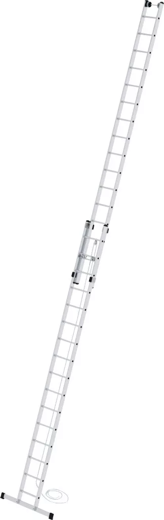 Alumíniumból készített kötélhúzó létra Stabil téglalap alakú cső alakú távtartó, mindkét oldalán hornyolt, 30 x 30 mm-es négyszögletű, négypontos karimás léc / szikracsatlakozás Kényelmes magasságbeállítás a lépcsőfokról a műanyag kábellel történő kábelhúzásnak és az automatikusan működő emelőhorgoknak köszönhetően : 470 mm (keresztirányú) Kapható keresztezéssel és anélkül Megjegyzés: A szabvány szerint a hosszabbító létra szakasz nem választható el a létrától 3,0 m feletti hosszúságon. Maximális terhelés: 150 kg