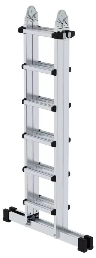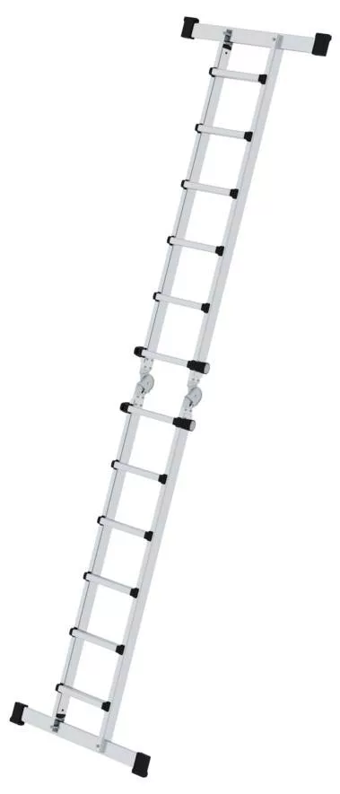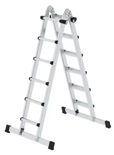 Műszaki adatok: Anyag: Alumínium · Fokok/szintek száma: 24 · Fokozatmélység: 30 mm · Külső szélesség: 700 mm · Munkamagasság (max.): 7.5 m · Terhelés (max.): 150 kg · További műszaki adatok: A létra hossza egyetlen létraként: 6,4 m · Létra hossza lépcsőként: 3,1 m · Lépcsőmagasság / lépésmagasság: 30 mm · Szállítási méret, szélesség: 1,86 m · Szállítási magasság: 0,7 m · Szállítási méret mélysége: 0,21 m Keresztgerenda szélessége: 1 m