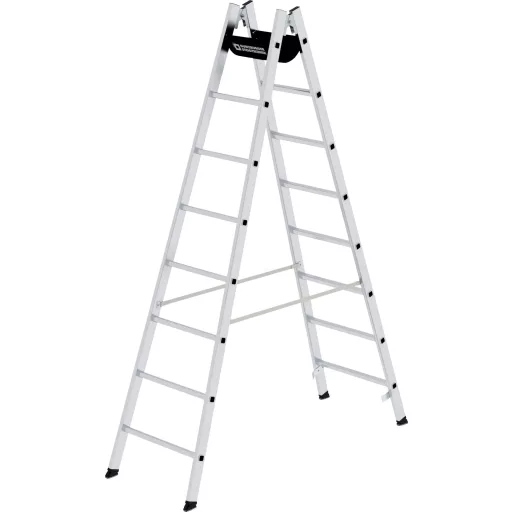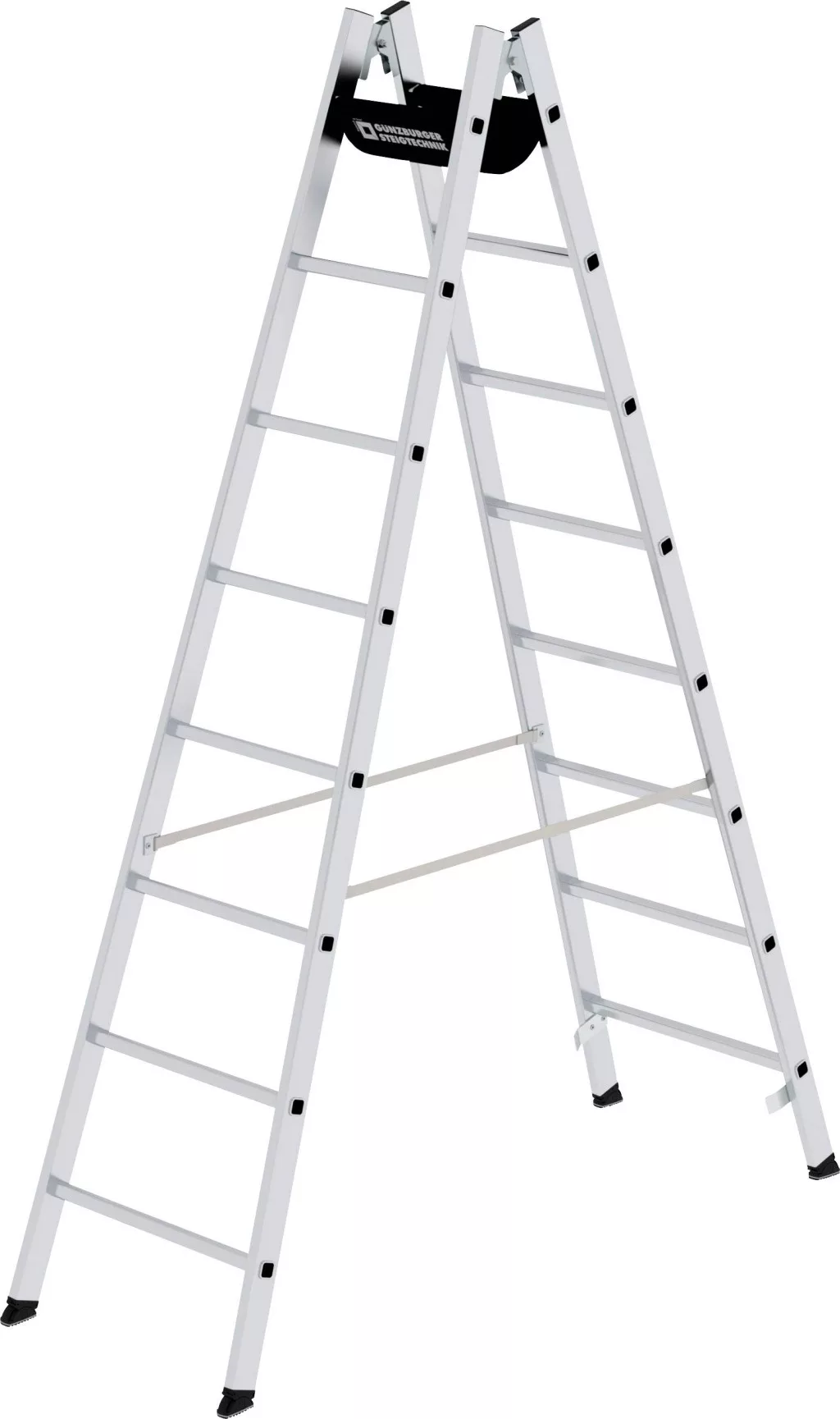 Alumíniumból készült létralépcsők Stabil téglalap alakú csövek Négyszögletes bordák 30 x 30 mm-rel, mindkét oldalán bordázva, 4-pontos karimás szár / csatlakozó csatlakozás Kúpos csapvezető a biztonságos állványhoz Tömör, horganyzott acél csuklópánt csavarkötéssel nivello® létracipő szabadalmaztatott 2 tengelyes döntési technológiával A szórógép felső oldala két nagy szilárdságú, hosszú hosszú hevederrel
